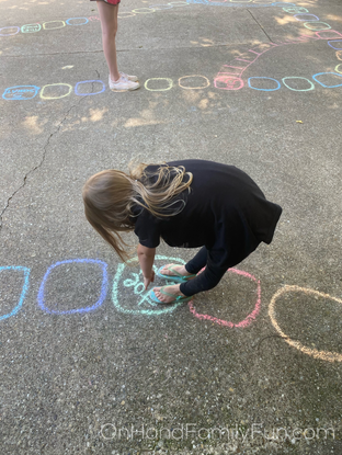 At the beginning of the 2020 pandemic, when we all found out we would be staying home indefinitely, our family set a new schedule. The schedule included daily outside time, which has proved NECESSARY to our sanity! Two months in, however, we sometimes find ourselves in a rut, having found all the bugs, ridden all the scooters, and played all the things. Earlier this week, I knew it was bad when my four year old asked to spend his outdoor time playing on my phone.🤦🏻♀️ Today, to keep things fresh, we broke out the chalk and some board game cards to invent our own driveway game. The kids loved it!
