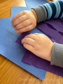 Cut some pieces of tape and streamer (or thin paper) for your little one, and let him or her count out eight tentacles to attach to the back side of the octopus. Then, turn the octopus over to add a face with markers or googly eyes.