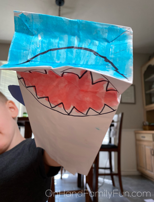 Turn your shark over, paint her, and add eyes and paper fins to her top and sides. Once she is dry, your kids can swim her all over the house and chomp away!